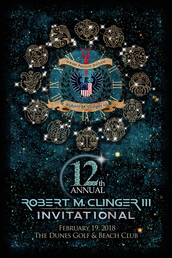Myrtle Beach, South Carolina, February 26, 2018—The Executive Committee of the Robert M. Clinger III Invitational Golf Tournament released the results of the 12th annual tournament contested on Monday, February 19, 2018 at The Dunes Golf & Beach Club in Myrtle Beach, South Carolina. After a tournament-high temperature of 75 degrees and plenty of sunshine in 2017, the weather returned to tournament conditions in 2018 with plenty of rain and a high of only 60 degrees. Though the rain was contrary to all weather forecasts for the day, it did not deter the field of sixty-three competitors.