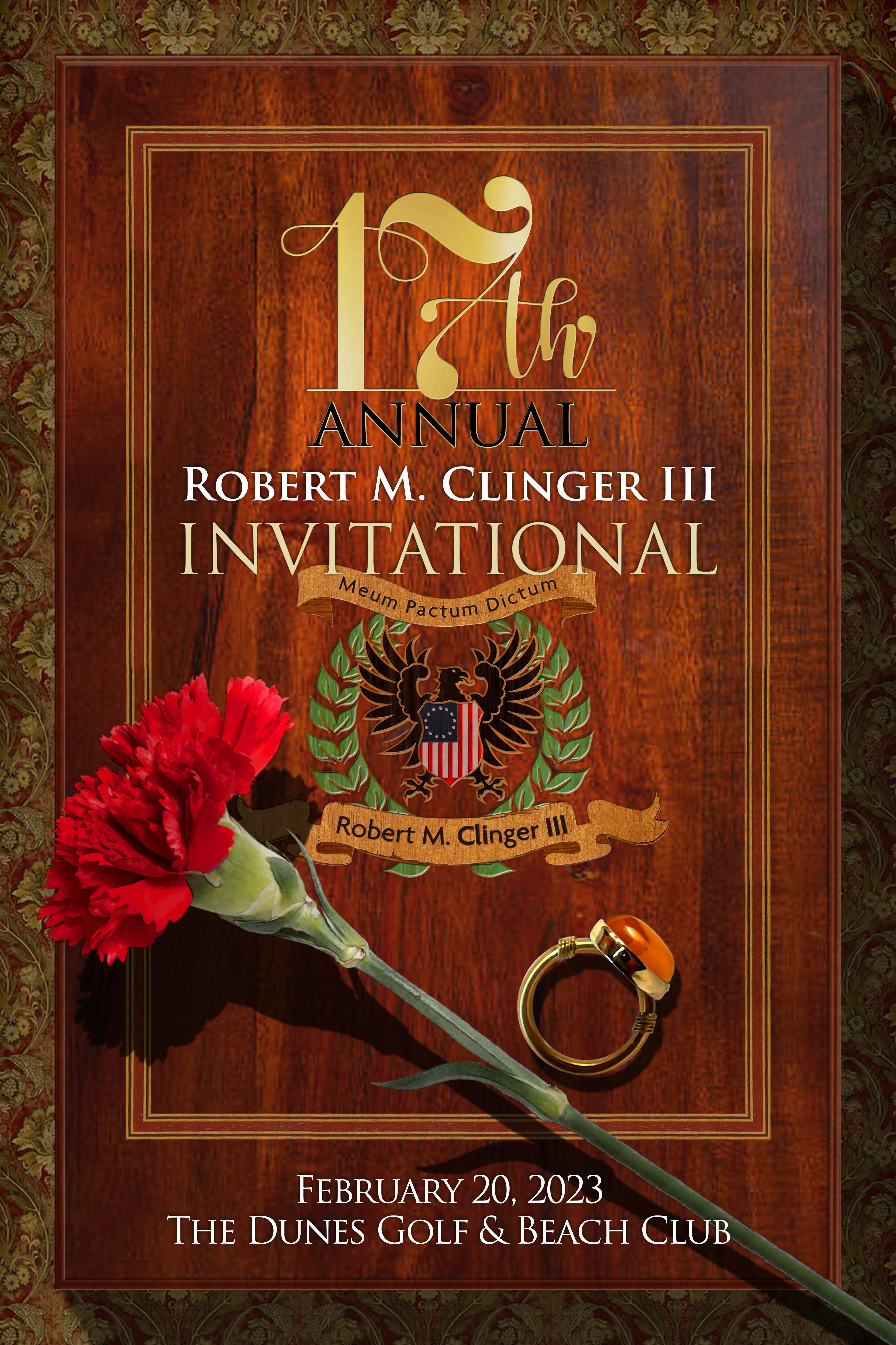 Myrtle Beach, South Carolina, February 21, 2023—The 17th Annual Robert M. Clinger III Invitational was held on Monday, February 20, 2023 at The Dunes Golf & Beach Club in Myrtle Beach, South Carolina. Competition commenced shortly after 12:00 PM with a shotgun start. Sixty-eight players enjoyed sunny skies, with no chance of rain, light winds and a high of nearly seventy degrees as they competed for the Obelisk of Victory.