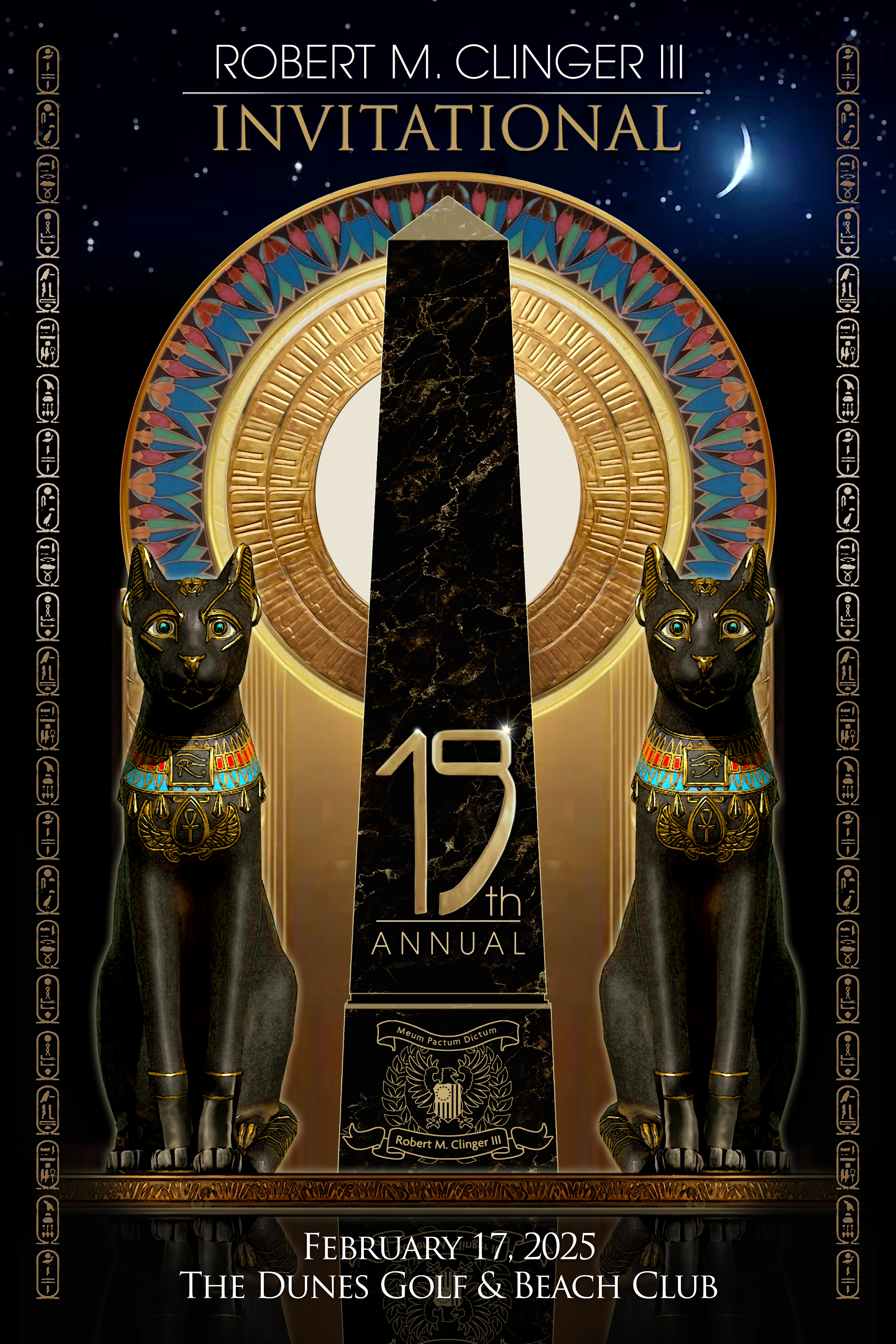 Myrtle Beach, South Carolina, February 18, 2025—The 19th Annual Robert M. Clinger III Invitational was contested on Monday, February 17, 2025 at The Dunes Golf & Beach Club in Myrtle Beach, South Carolina. The field of eighty-four players braved the cold and wind for the chance to be named Invitational Champions and to hoist the coveted Obelisk of Victory which had been damaged in a freak accident in late 2024. The competition started at noon with a shotgun start.