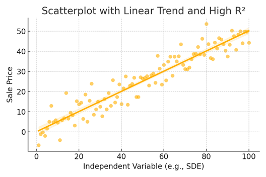 Figure 2: A scatterplot with R² = 0.9 shows a strong linear trend, supporting reliable DMDM multiples for valuation.